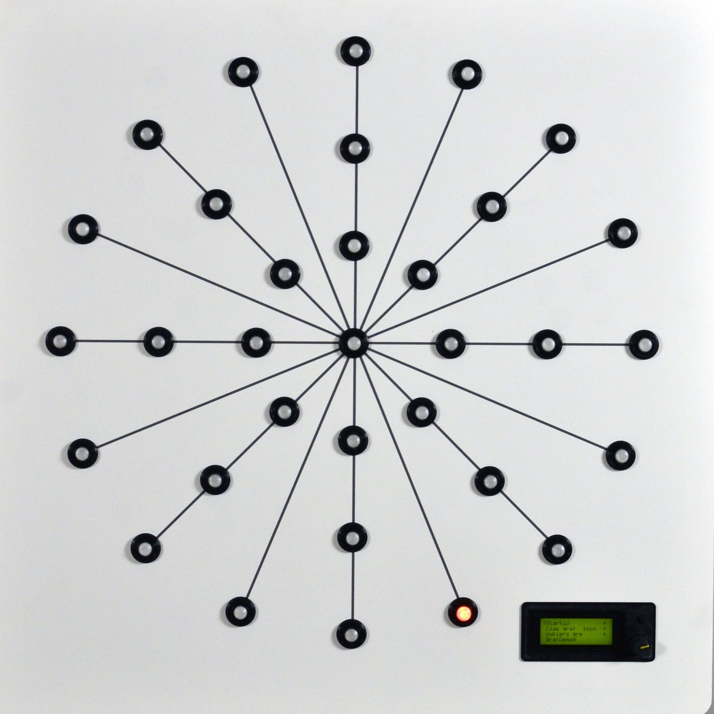 Wyniki gry są przedstawiane na wyświetlaczu: liczba zapalonych, zgaszonych i pominiętych lampek, średni czas gaszenia poszczególnych kolorów lampek, itd.