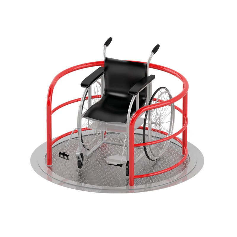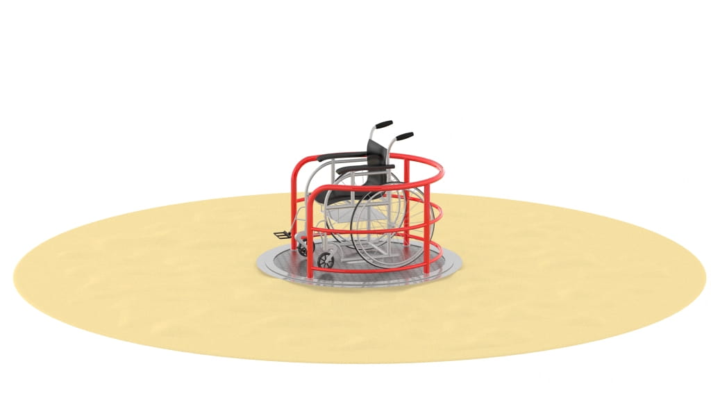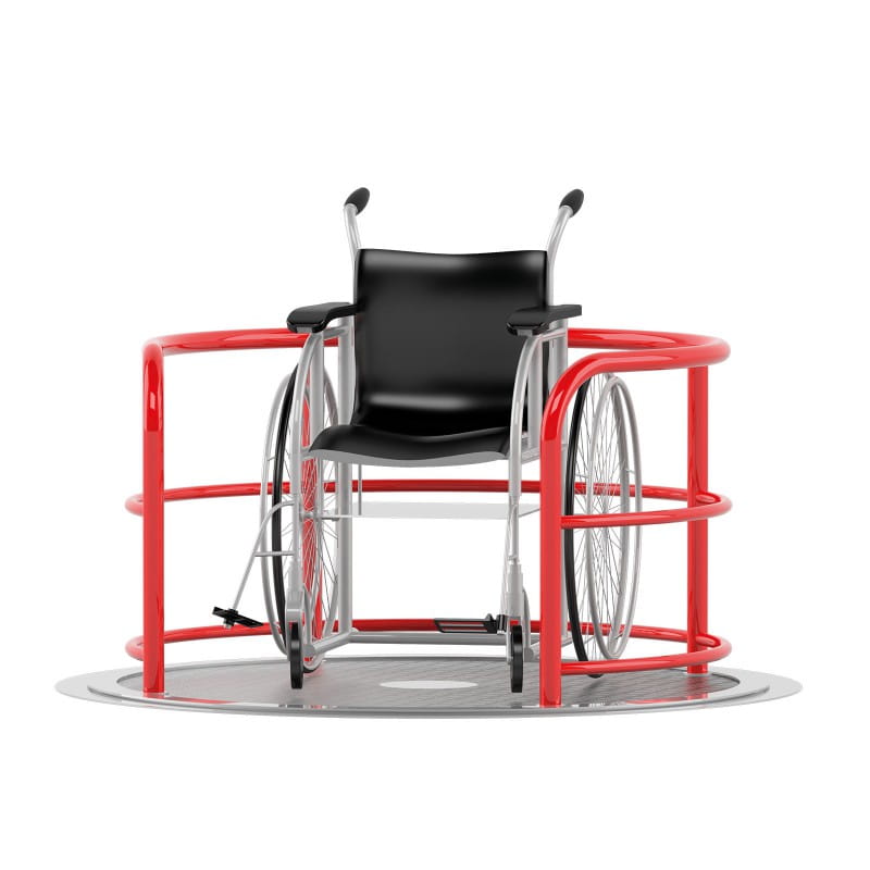 Karuzela umożliwiająca zabawę dzieciom niepełnosprawnym poruszającym się na wózkach inwalidzkich. Trwała i bezpieczna, wykonana z materiałów najwyższej jakości. Daje możliwość budowania poczucia własnej wartości, integruje i zacieśnia więzi społeczne.