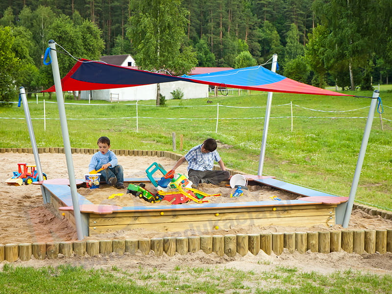 Piaskownice to nieodzowny element każdego placu zabaw. Zabawa w piasku pomaga rozwijać sprawność motoryczną i koordynację, stwarza również okazję do nawiązania nowych przyjaźni. Duża piaskownica jest idealnym rozwiązaniem dla przedszkolnych placów zabaw, jej dodatkowym atutem jest zadaszenie, które niewątpliwie zostanie docenione przez użytkowników zwłaszcza podczas gorących, letnich dni. Wysokość zadaszenia może być regulowana, tak by daszek mógł również pełnić funkcję przykrycia piaskownicy w czasie gdy nikt z niej nie korzysta.