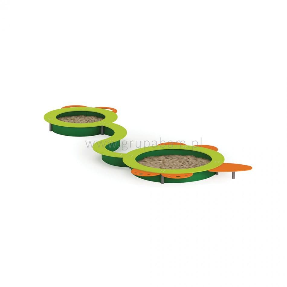 Piaskownice to nieodzowny element każdego placu zabaw. Zabawa w piasku pomaga rozwijać sprawność motoryczną i koordynację, jest także okazją do poznania nowych przyjaciół. 2 okrągłe piaskownice łączy kręta ławeczka, która może pełnić funkcję siedziska jak i toru wyścigowego albo trasy do gry w kapsle. Okolona ławeczką z płyty HDPE z półeczkami i stolikiem piaskownica stanie się z pewnością ulubionym miejscem zabaw najmłodszych.