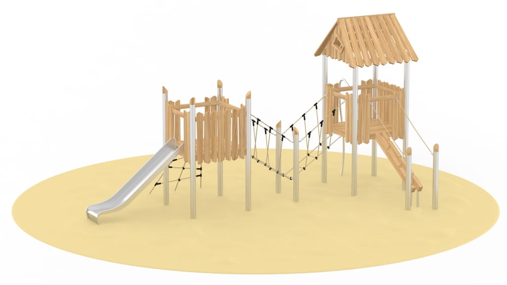 Ciekawe, trudne do pokonania wejścia, urozmaicone ścianki wspinaczkowe, nieoczywiste przejścia pobudzają do działania, planowania ruchów i zaangażowania w forsowaniu kolejnych przeszkód. Masywne, stalowe słupy konstrukcyjne, piękne, a zarazem trwałe drewno akacjowe o nietuzinkowym wyglądzie nadają kolekcji prestiżowego charakteru.