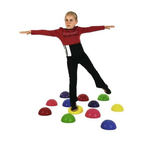 Grzybek równoważny posiada liczne wypustki sensoryczne działające stymulująco na strefy reflektoryczne stóp. W pracy z dziećmi urozmaicają ćwiczenia zadaniowe. Półkule wykonane z najwyższej jakości surowców (Ruton).