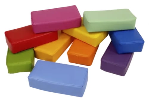 Zestaw super cegiełek to kształtki rehabilitacyjne wspierające rozwój dużej motoryki u dzieci. Cegiełki można wykorzystać osobno do ćwiczeń ruchowych lub jako element większego zestawu tworząc tory przeszkód lub konstrukcje przestrzenne. Kształtki można wykorzystać w trakcie zabawy, ale także w rehabilitacji ruchowej oraz podczas gimnastyki korekcyjnej. Kształtki wykonane są z materiału z powłoką PCV przeznaczonego dla wyrobów medycznych, dzięki czemu są bardzo łatwe w czyszczeniu oraz dezynfekcji. Produkt posiada certyfikację jako wyrób medyczny.