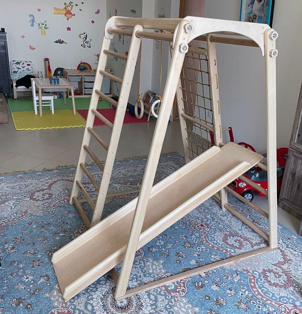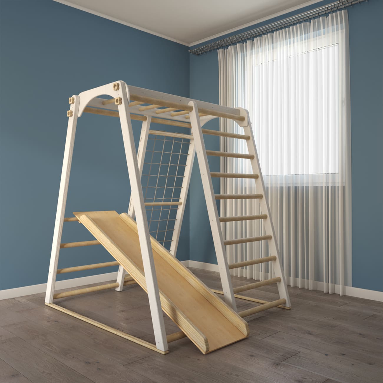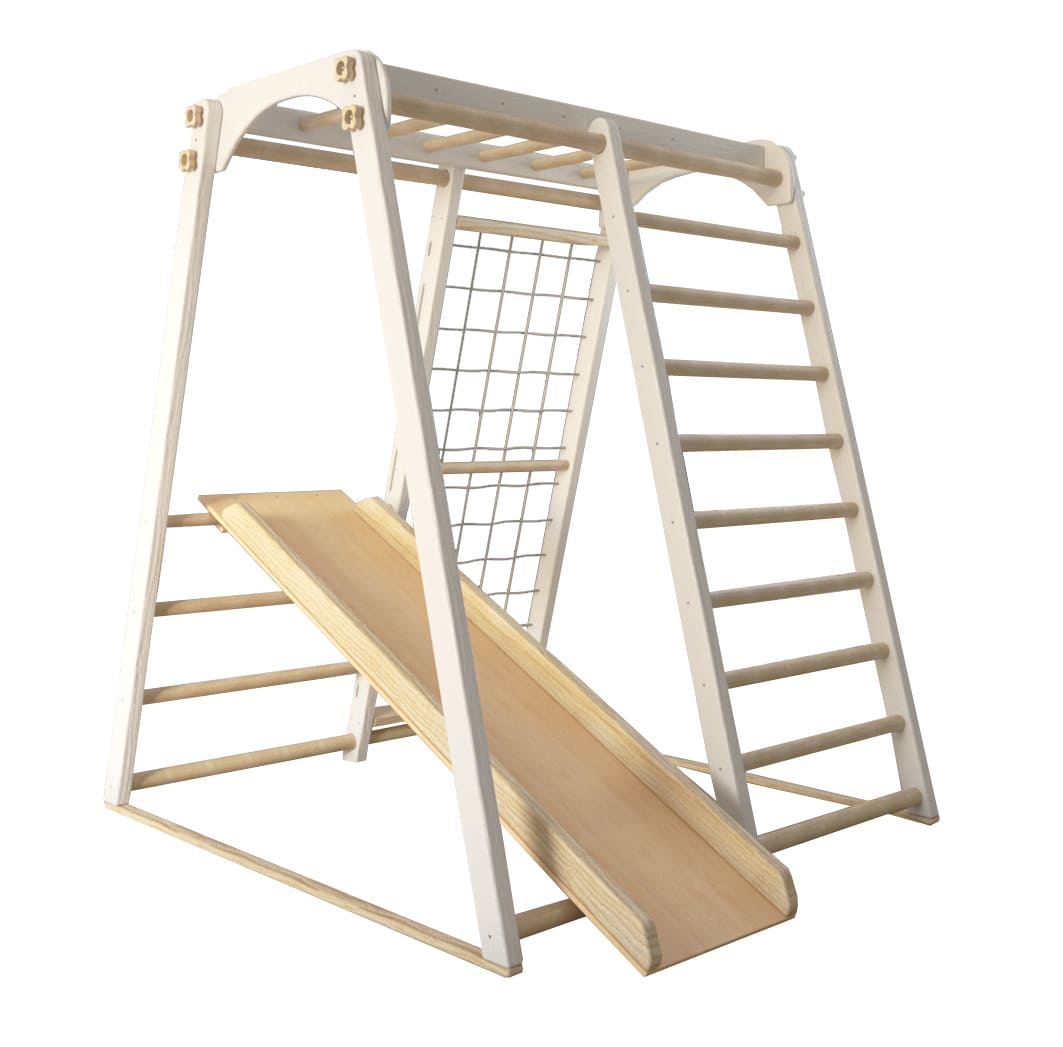 Również to wspaniała okazja do kształtowania sprawności fizycznej, motoryki dużej i równowagi. Zestaw zawiera siatkę do wspinania, zjeżdżalnię i drabinki do ćwiczeń.